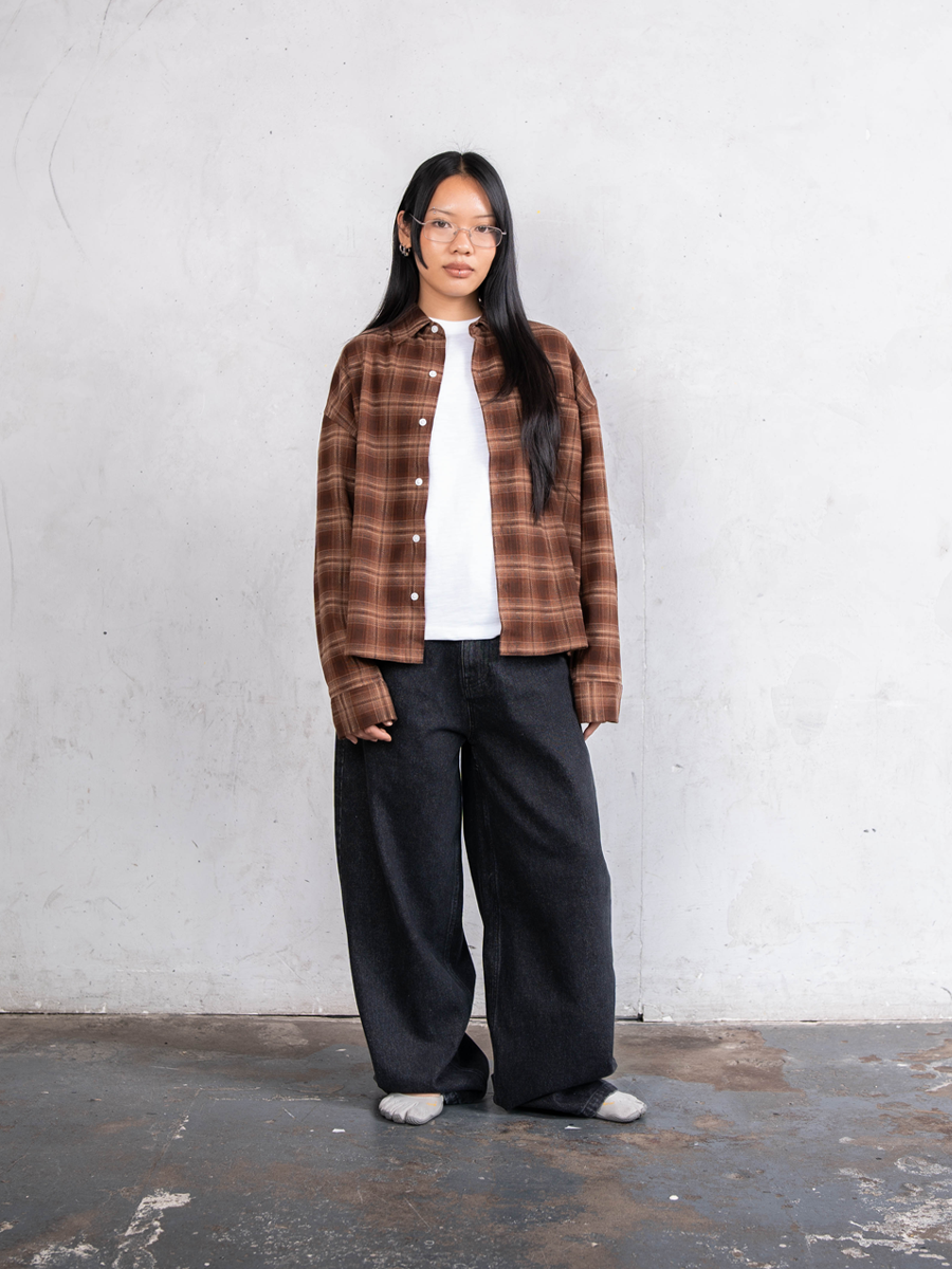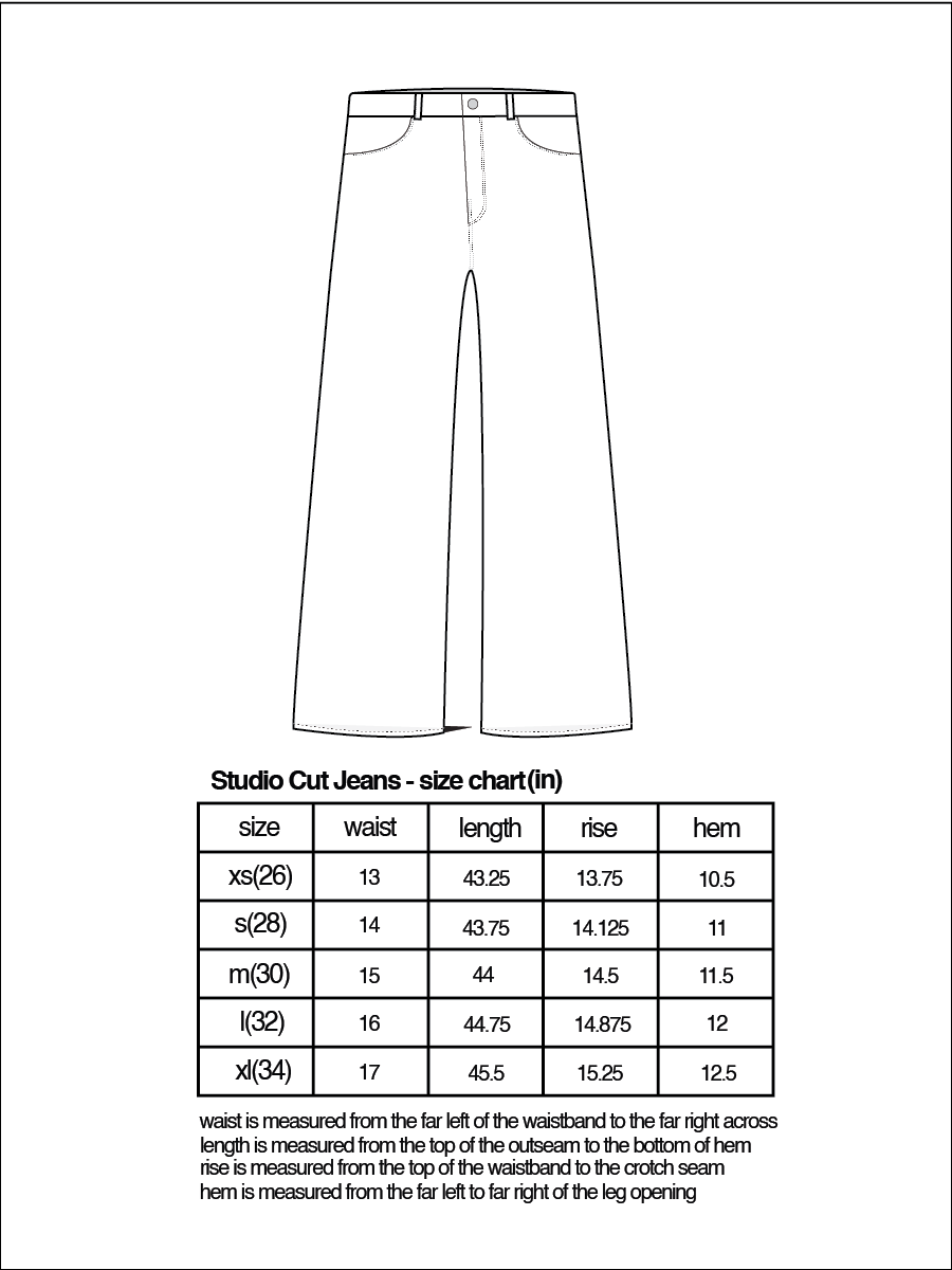 A classic five-pocket jean, finished with a pumice stone wash. Cut in our straight-wide Studio silhouette with a high rise for everyday wear.